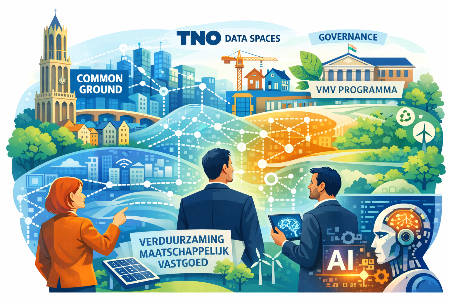 Op 12 maart 2026 komen we met de Informatiemanagers bij elkaar bij gemeente Utrecht om te kijken hoe we het informatiemanagement toekomstbestendig kunnen inrichten. We starten met de ontdekkingstocht hoe we de informatie-architectuur Common Ground kunnen gaan toepassen voor het borgen van onze data in de toekomst. Vervolgens laat TNO zien hoe zij met de inzet van Data Spaces samenwerken met marktpartijen voor hun vastgoed. In de middag kijken we verder naar governance vanuit het VMV programma (Verduurzamingsaanpak Maatschappelijk Vastgoed) vanuit het ministerie van VRO met TKI bouw en techniek. We sluiten af met de praktische toepassingen van AI.