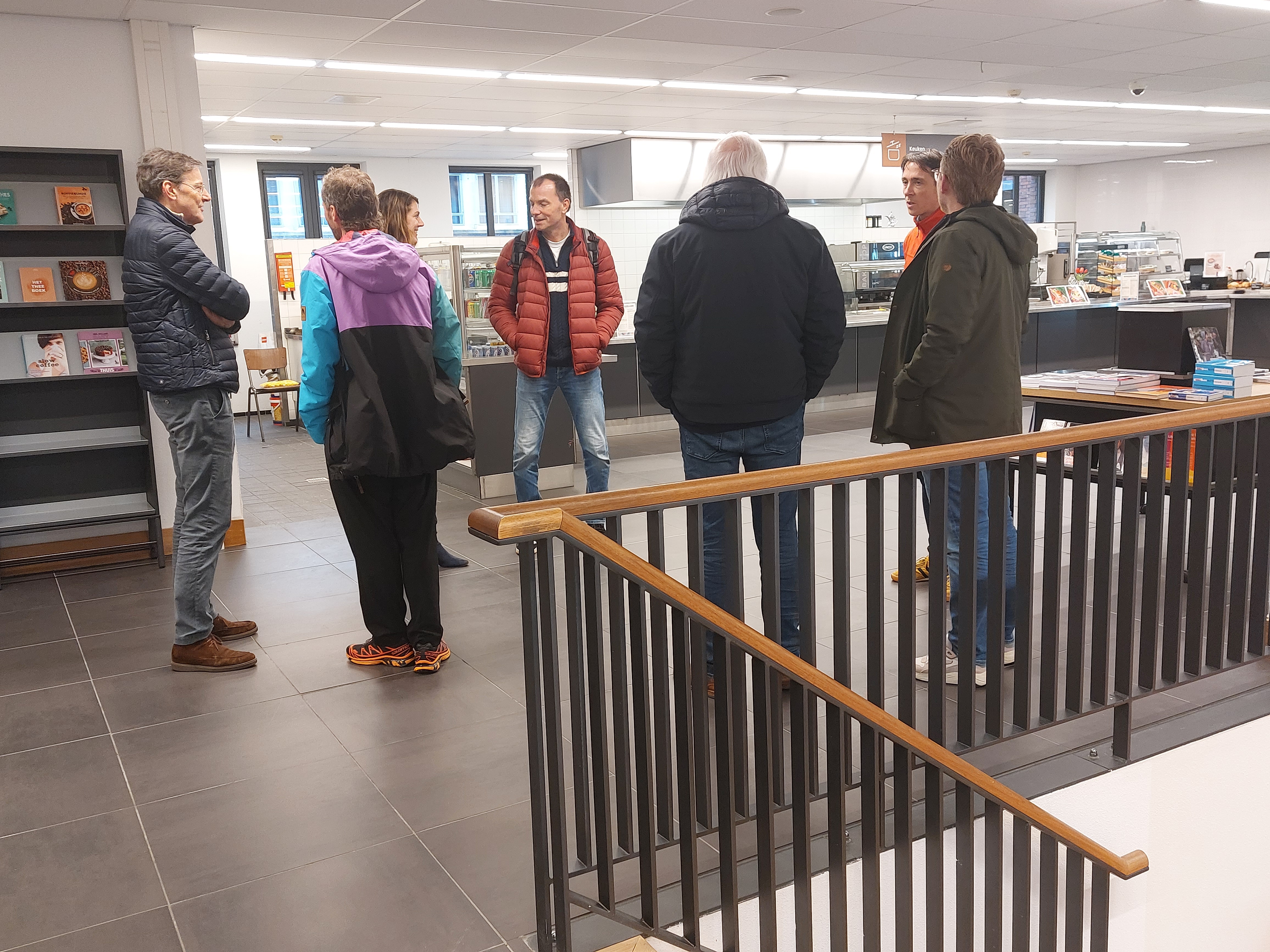 Na een heerlijke lunch lopen we naar de tijdelijke bibliotheek. Die ziet er goed uit. Gastvrije ruimte waar de samenleving gebruik van maakt en waar de hele exploitatie (de programma-, vastgoed- en de operationele exploitatie) op het bordje van de gemeente ligt. Net als een park of plein maar dan met een dak, zonder kostprijshuur, zoals wethouder van Rees van Almelo dat ook graag voor sportaccommodaties zou zien.